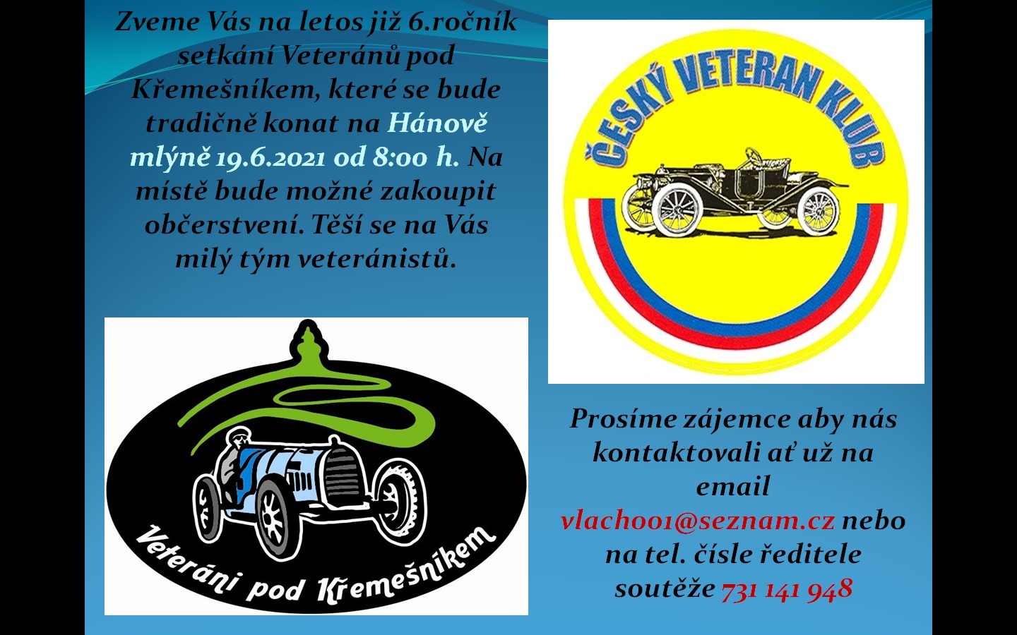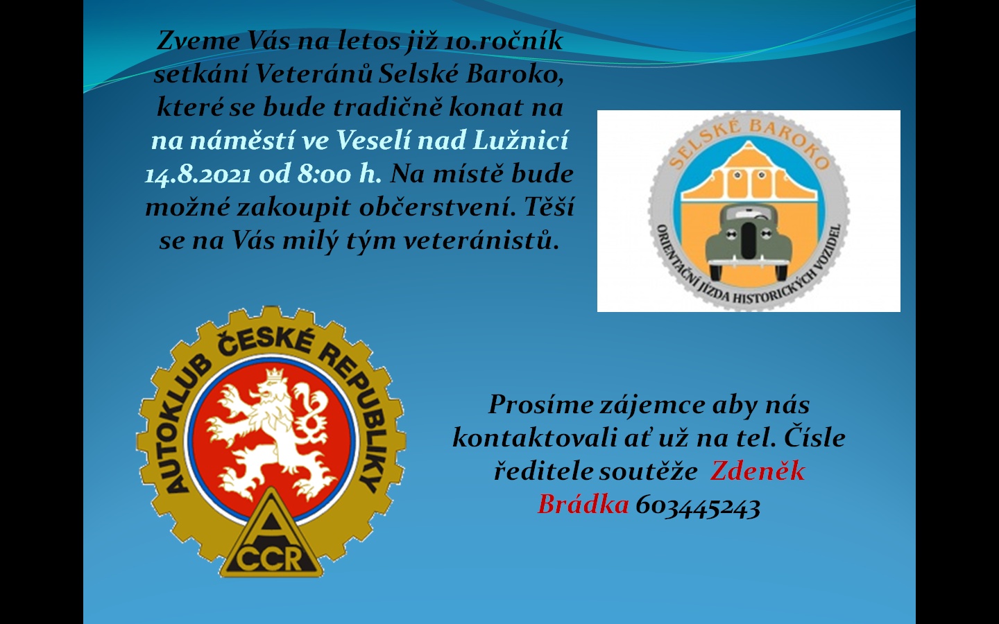 Zveme Vás na druhou naší soutěž, Selské Baroko - O pohár města Veselí n. Lužnicí 14.8.2021, které se bude tradičně konat na naměstí ve Veselí n. Lužnicí. Přihlášky máme elektronicky na stránce veteranakce.cz.